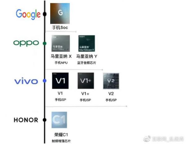 而与谷歌相比,OPPO有NPU、蓝牙芯片两类,但相对难度都不大。VIVO只有ISP芯片一类,虽然更新了几代,还只有一类,而荣耀只有射频增强芯片,近日才推出的,这个应该是难度最小的。