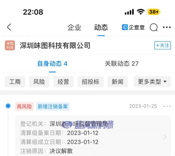 但深圳味图科技有限公司已经在2023年1月12日决议解散注销。