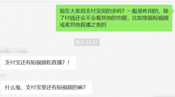 另外一种虽然知情,但并不会选择在支付宝上花费时间看视频。前述杭州市民小喻向陆玖商业评论坦言,她在工作之外,大多数时间分配给了加班和打游戏,剩下的可能会花在抖音,实在没有多余的时间再分配给支付宝刷短视频。“你会在银行APP里看短视频吗?”她这样问道。