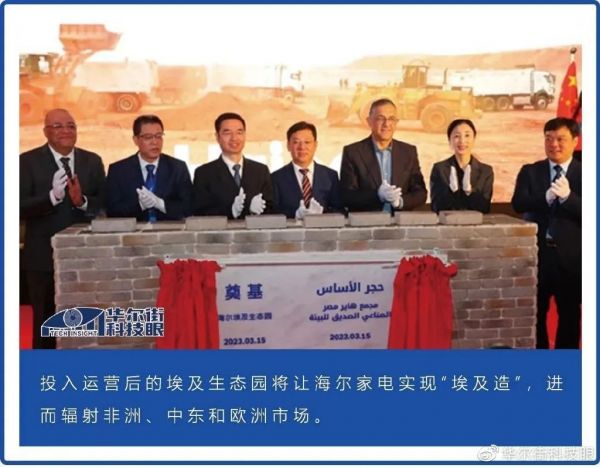 当地时间3月15日,海尔埃及生态园举行奠基仪式。该生态园区占地20万平方米,总投资额达1.6亿美元,设计总产能超百万台。本次奠基的一期工程主要生产空调、洗衣机和电视三类产品,预计2024年上半年投入运营;二期工程主要生产冰箱和冷柜。