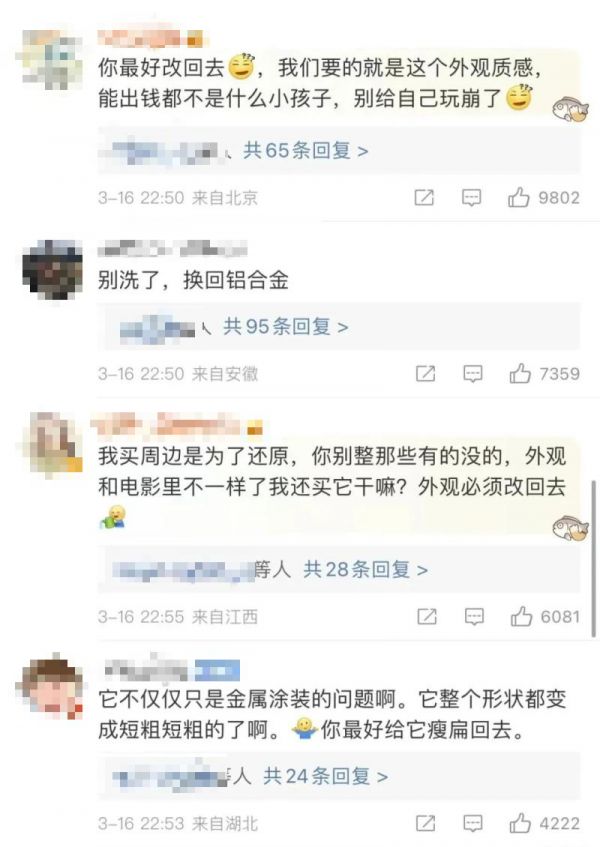 不少网友在微博评论区直言:“买周边是为了还原,最好改回去。”