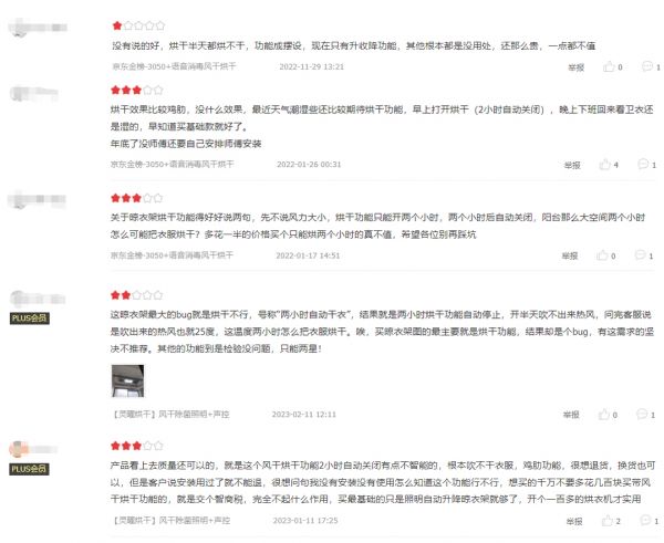 (图源:京东商城)然而,小雷通过网上用户的评价了解到,部分用户对智能晾衣机并不是那么满意,认为产品上的烘干和杀菌功能简直就是鸡肋。开启烘干时费电且噪音大不说,经常上半部分干了下半部分还在滴水,效果极其不理想。所以,智能晾衣机上的烘干消毒功能到底是不是智商税呢?值不值得为此多花钱?