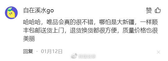 还有人表示:“唯品会真的很不错,哪怕是大新疆,一样顺丰包邮送货上门,退货换货都很方便,质量价格也很美丽。”