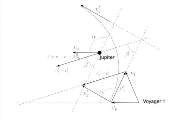 比如,在手推旅行者号引力弹弓中,张朝阳以太阳为参考系,将旅行者号入射速度设为v1,出射速度设为v2,将木星自身速度设为vp,最后经过一系列等式,得出(v2)^2>(v1)^2,旅行者号就这样完成了加速过程。