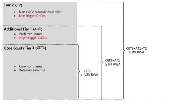 许多国内投资者可能会对什么是AT1债券感到陌生,但在欧洲银行业,基本每家欧洲银行都在金融危机后发行过该债券。AT1债券本质上是应急可转债(CoCo Bonds)中的一种,该债券种类诞生于2008年金融海啸后,为了满足2010年出台的巴塞尔协定III(Basel III)中提高对银行的资本的要求。