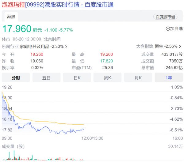 从2016年6月,Molly系列盲盒正式上线天猫旗舰店,一秒售罄;到2020年12月在香港上市,短短四年到达巅峰时刻;再到2023年3月跌下神坛,仅仅过了不到七年的时光,不得不说大起大落实在来的太快。截至3月20日,泡泡玛特再度股票再度下跌到达17.96港元每股。