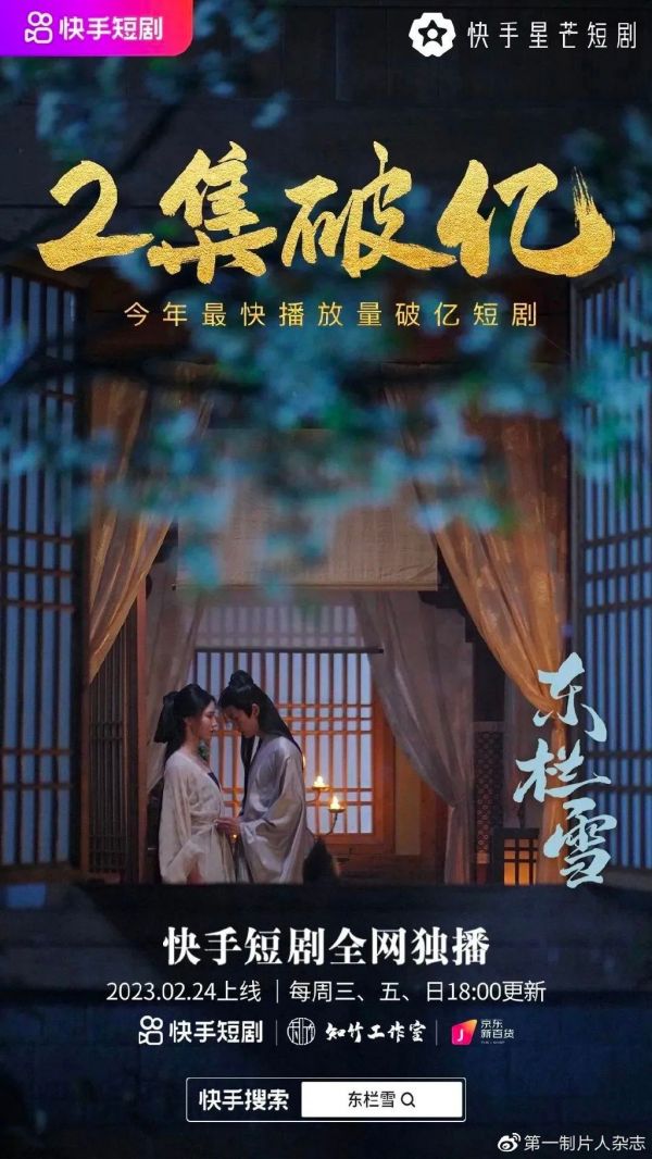 近日,快手古风短剧《东栏雪》、《成曦曲》热度居高不下。其中,《成曦曲》位居2月星芒短剧的分账剧榜首,由《长公主在上》原班人马打造的《东栏雪》一上线更是刷新了站内纪录,更新2集播放量破亿,成为短剧行业今年最快播放量破亿的短剧,并受到了央视的关注。据悉,《东栏雪》还与京东新百货达成了深度合作。