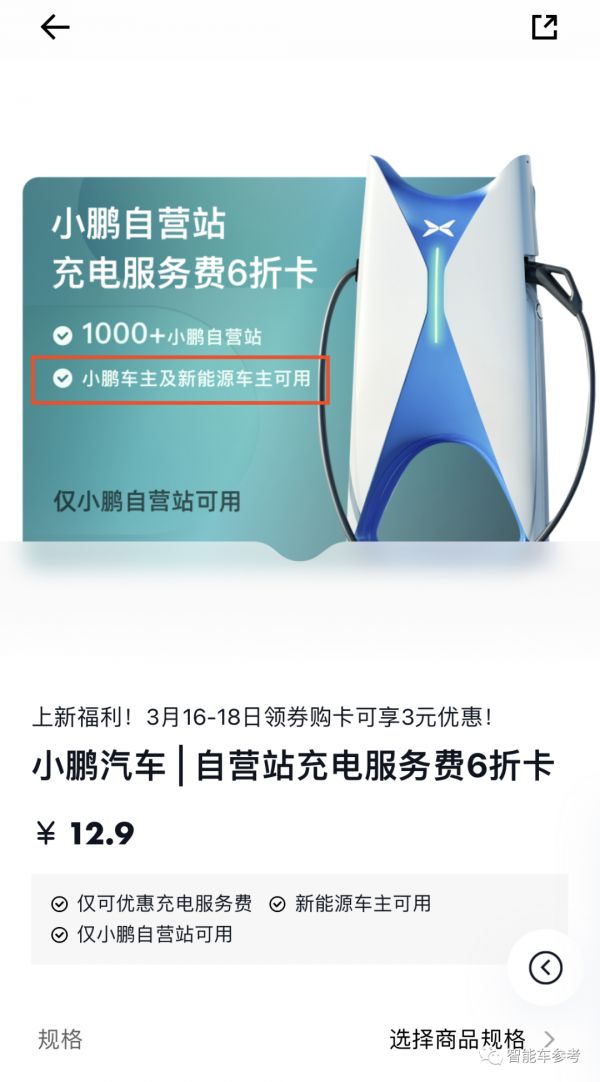小鹏汽车商城最近上架了新充电服务费6折卡,而与以往充电卡不同的是,这次的服务卡是所有新能源车主都可用。
