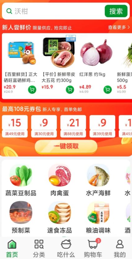 在叮咚买菜App中,刚一切换进长辈模式,页面中间最显眼的位置不是商品,而是一排满减优惠券。但记者点击一键领取后,系统却弹出一行小字,不符合领取条件。这时,页面上“108元新人见面礼待领取”的按钮还在一跳一跳,但怎么点都没反应。再退回到之前的界面,这些领不了的优惠券仍然占据着屏幕中央,十分烦人。