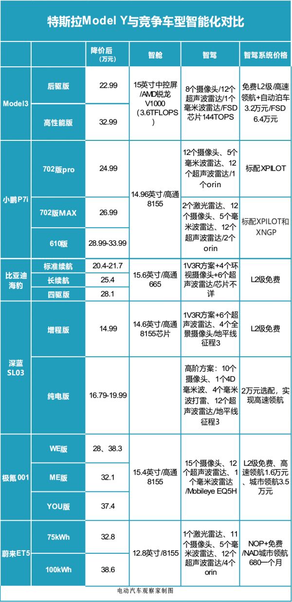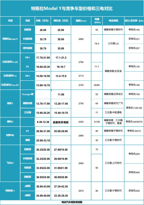 紧凑型的比亚迪宋/元新能源和埃安Y并不是中型的Model Y的直接竞品。但当新能源SUV市场的定价车型拿出新价格时,尽管中间存在10万元的价差,还是必须“跟牌”: