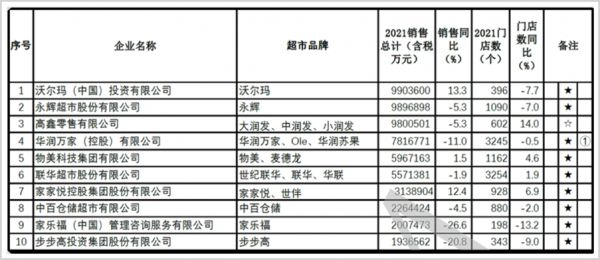 ▲2021年中国超市TOP10来源:中国连锁经营协会