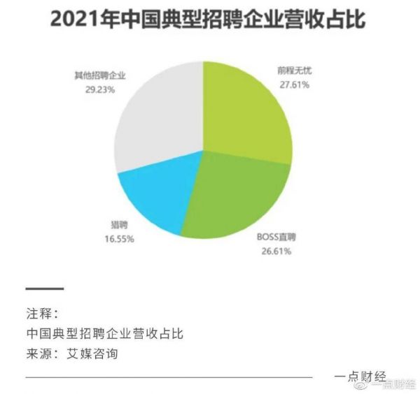 眼下,BOSS直聘市值达到802亿港元,远高于猎聘的64亿港元。去年前三季度,BOSS直聘营收为34.2亿元,高于猎聘的20.1亿元「1」。