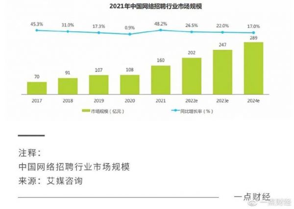 当然,互联网高端招聘市场依然前景广阔。艾媒咨询报告显示,中国在线招聘市场在逐步增长当中,2022年已经达到202亿元,预计到2024年将达到289亿元。