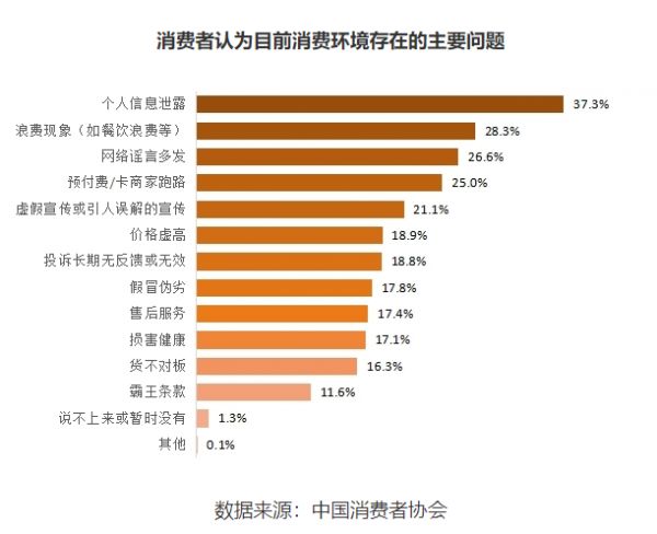 中国消费者协会在3月15日发布的2023年“提振消费信心”消费维权年主题调查结果显示,消费者认为当前消费环境仍然存在短板。其中,“个人信息泄露烦扰多”排在各类问题首位。