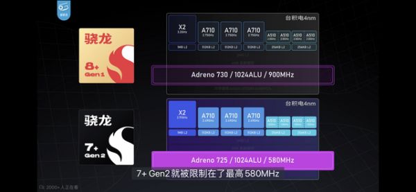 Adreno 725 GPU 运行频率:580Mhz(规格同骁龙8+一致,但频率降低320MHz)