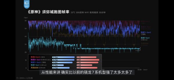 最终便是我们的实际游戏测试,极客湾这边则是找来了《原神》这款游戏进行测试。在帧率情况下,相比自家上一代的骁龙7 Gen 1 可谓是质的飞跃,已经从卡顿的级别提升到了能玩的级别。同时功耗方面,在实现了51.6 FPS平均帧率的情况下,功耗则是来到了6.3W,虽然说比不上高通骁龙 Gen 2,但是这样的表现也是目前第一梯队的水准。