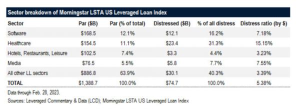可以看到,能源的占比是最高的,但因为油价很高,所以能源的违约其实很低,真正有问题的是娱乐和医疗。