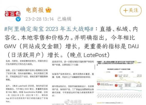 淘宝已经明确,今年相比GMV增长,更重要的指标是DAU增长。因此,加大内容化投入,提高用户粘性和用户时长,依然会是淘宝的重中之重。