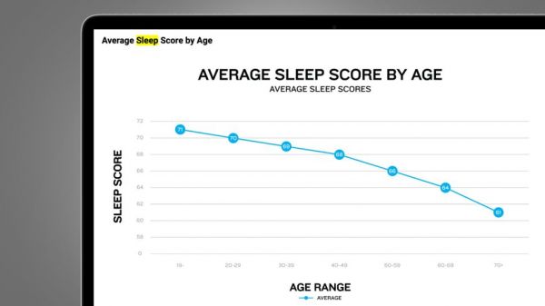 佳明的睡眠评分研究图表显示了睡眠质量如何随着年龄的增长而下降