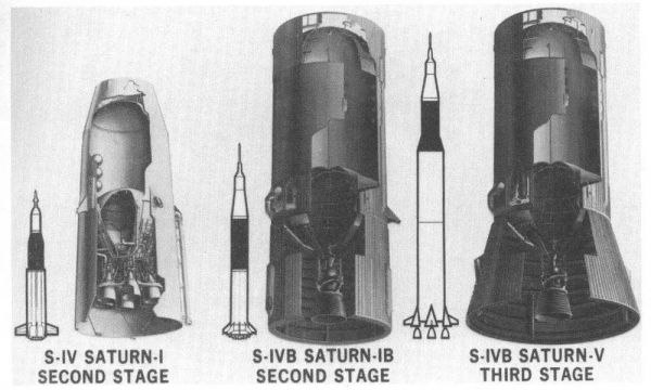 土星-1、1B和5号上的S-IV/S-IVB级位置及形貌。来源:NASA[5]