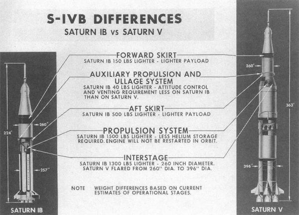 土星-1B与土星五号所使用的S-IVB上面级的差异。来源:NASA[5]