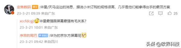 今日数码博主@定焦数码表示:你们能想到的最高屏幕参数,往小米13U身上放就完事了;博主在评论区还自己多说了一句:华星/天马这边的消息,据说小米订购的规格很高,几乎是他们能拿得出手的最顶方案。在这条微博的评论区博主与个别网友进行互动: