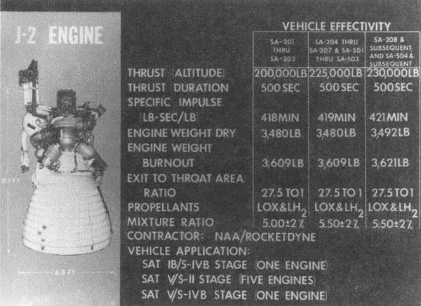 J-2火箭发动机的参数。来源:NASA[1]