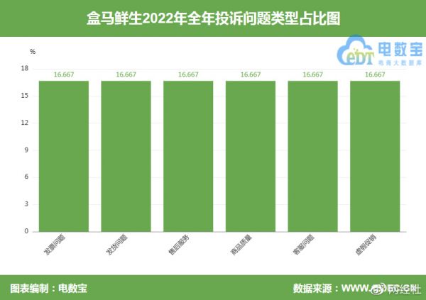 根据“电诉宝”受理的数字零售中生鲜电商领域用户有效投诉显示(依据投诉量排行),盒马鲜生排名第3位。2022年全年,同样被投诉的类似平台有:美团优选、叮咚买菜、多点、每日优鲜、本来生活、朴朴超市、年丰大当家、美菜网、永辉超市。此前,我厨、大润发优鲜、利淘网等生鲜电商平台也遭遇过类似投诉。