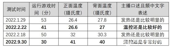 问题描述:博主于2022年1月至9月先后4次对不同手机进行温度测试。在经过一定时间运行游戏后,使用测温仪对手机正面及背面进行测温,并对手机的温控效果进行点评,4次测评结果出入较大,不同品牌的手机测评前后标准不一。