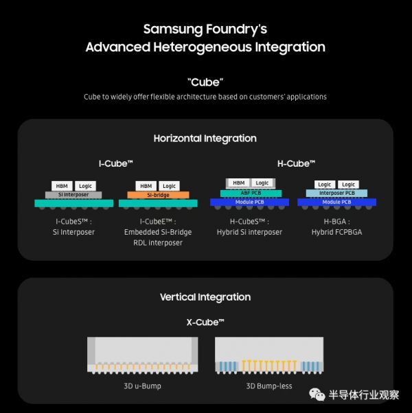 基于这样的理解,三星在晶圆代工研发部门沿着水平集成和垂直集成两种方向,先后研发出三大先进封装技术:I-Cube、H-Cube和X-Cube。