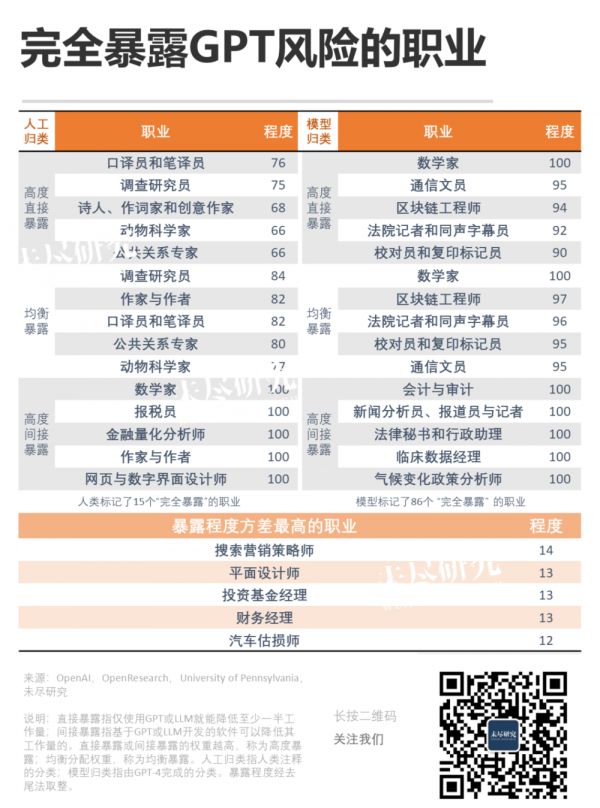 本文来自微信公众号:未尽研究 (ID:Weijin_Research),作者:未尽研究,原文标题:《GPT-4暴露职业风险排行,央行排第十;当心变成“伪”专家》