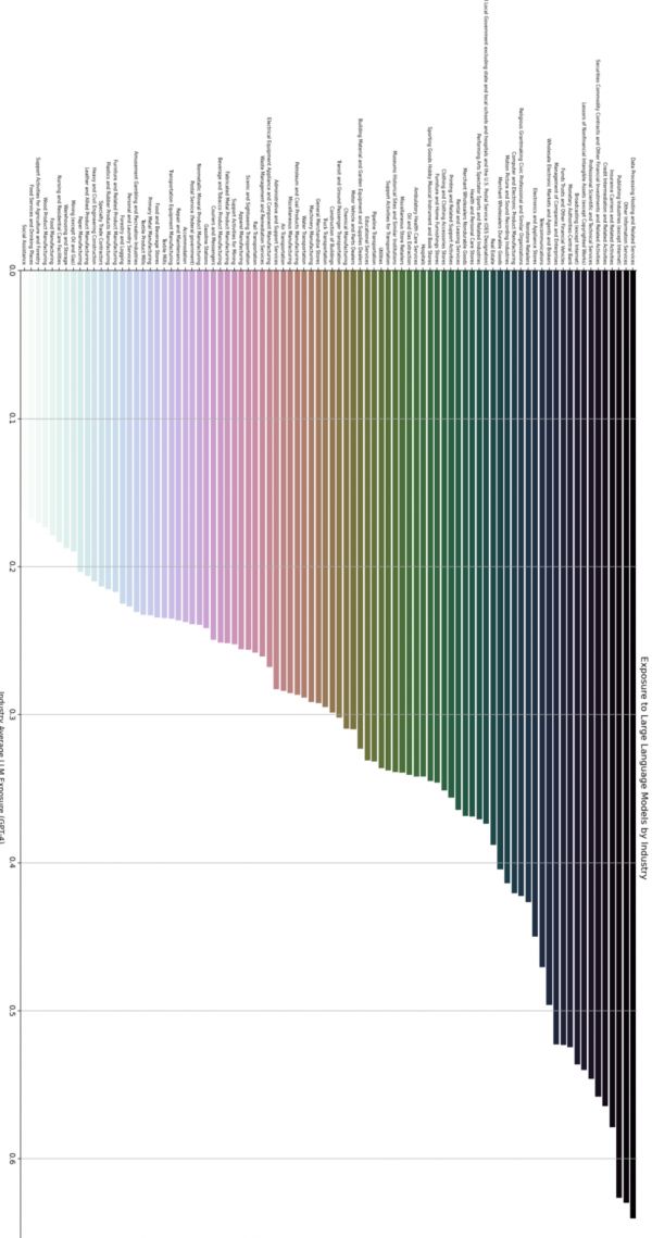 所谓暴露,是指因为技术的采纳所带来的影响,研究者们说,这可以是对具体职业的增强,也可以是替代。初步的研究显示,许多职业对GPT技术的暴露程度为零,也有一些职业的暴露程度为100%,更多的介于两者之间,说明这一技术会对人们的工作方式产生广泛的影响。