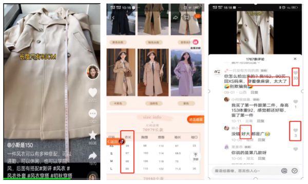问题描述:博主对玲玖风衣进行测评推荐,在作品阐述中强调该款风衣特别适合小个子,70979型号衣长只有93CM。经查阅该商家产品数据,显示与实际尺寸不符。同时,在作品评论区部分用户反映较为强烈,表示实物与博主测评视频中展示存在出入。