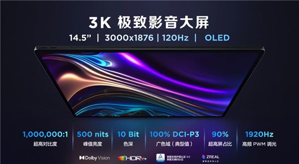 与此前的Y700相比,Y900一眼看去,最大的差异就是一块14.5英寸,3K分辨率的超大屏,配合来自汇顶科技的光线传感器,能够实现更精准的色温与环境光测量功能。