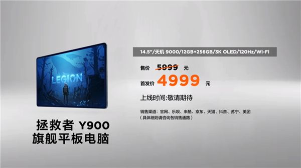 拯救者Y900平板起售价4999元,发售时间暂未公布。