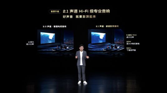 不仅画质更精美屏幕,TCL Q10G Pro在音响方面同样大幅升级,以2.1声道Hi-Fi级专业音响的强劲配置和最高70W的超大功率,为用户打造高保真音质,临场感十足。特别是独立高音、赛道型全频音响和独立重低音组合,高音清澈嘹亮,低音浑厚低沉。每一重声音,都有殿堂级沉浸体验。