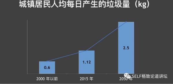 在 2000 年以前,我们每个人每天产生 1 斤左右的垃圾,现在每人每天产生约 2 斤的垃圾。如果我们以美国人的经济水平和生活方式为参照的话,那么未来我们每个人每天可能要产生5斤的垃圾。