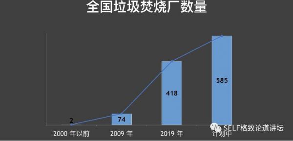 2000 年以前,整个中华大地只有两座垃圾焚烧厂;现在我们有 418 座垃圾焚烧厂,如果到了 2050 年,可能要建到 1000 座。
