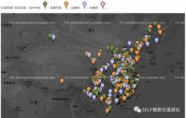 垃圾没有地方可以埋了怎么办?拿去烧吧。这张地图密密麻麻的坐标实际上是我们国家目前正在运行的、正在建设中的以及计划建设中的垃圾焚烧厂。