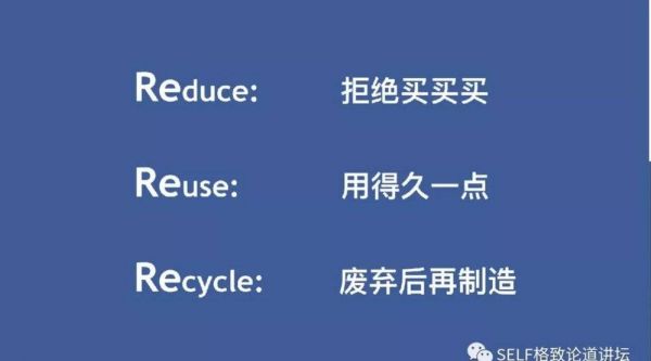 环保领域有个很知名的3R理论,最优先的就是Reduce,即从源头上减量,拒绝买买买。第二步是Reuse,即如果你必须要买东西,尽量用得久一点,重复使用它。如果最后这个东西不得不废弃了,我们希望它可以Recycle,即材料可以回收回来,通过一定的处理再制成新的东西。
