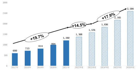 2021年,中国传统IDC市场保持稳定增长,市场规模达到1202亿元,近5年平均增长率达到19.7%,保持快速增长态势。未来,中国传统IDC市场规模将继续保持稳定增长,预计到2026年,市场规模将达到2584亿元。