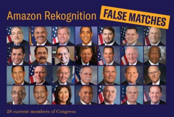 当 ACLU 将国会议员与犯罪数据库进行匹配时,亚马逊的 Rekognition 软件错误地将28名议员识别为罪犯。被识别为罪犯的 28 名议员中,40% 是有色人种,尽管国会议员中有色人种的比例仅为 20%。