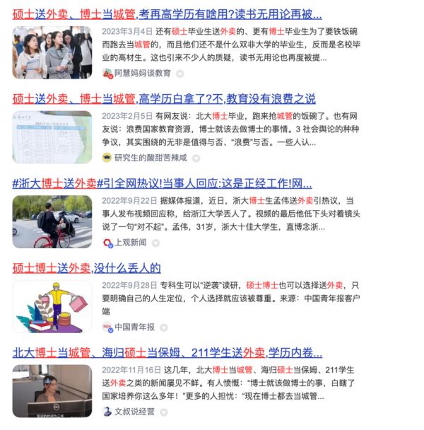 新闻和热搜里,多了很多xx硕士送外卖,xx博士当城管,985的学生涌入小县城……