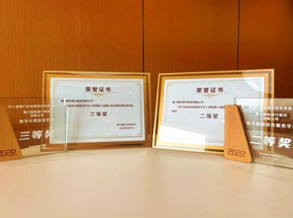 近日,中国金融科技生态建设与发展论坛暨第三届厦门市金融科技优秀项目评选在厦门举办,厦门国际银行“电子保函综合服务平台”“数字小微信贷平台”两个项目分别获颁二、三等奖。