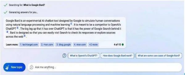 但New Bing能够给AI生成答案提供信息来源,以及基于生成答案自动提供拓展问题的功能,目前Bard还并不具备。这或许也将在一定程度上影响Bard的信息产出的可信度,以及给搜索信息场景扩展带来局限。