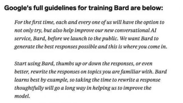 谷歌此前提供给员工的Bard训练指南,图片来自Business Insider