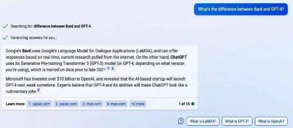 但在定位上,谷歌强调 Bard 并不是其搜索引擎的替代品,而是“搜索的补充”, Bard自称为“具有创造力的得力协作者(Collaborator)”,而New Bing则把AI助手称之为“副驾(Copilot)”。