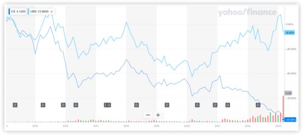 周一,在瑞士政府的“强扭”下,瑞银终于同意以30亿瑞郎收购瑞信,仅为上周五收盘瑞信市值(75亿瑞郎)的四成。瑞信167年的历史以折价贱卖画上终点。