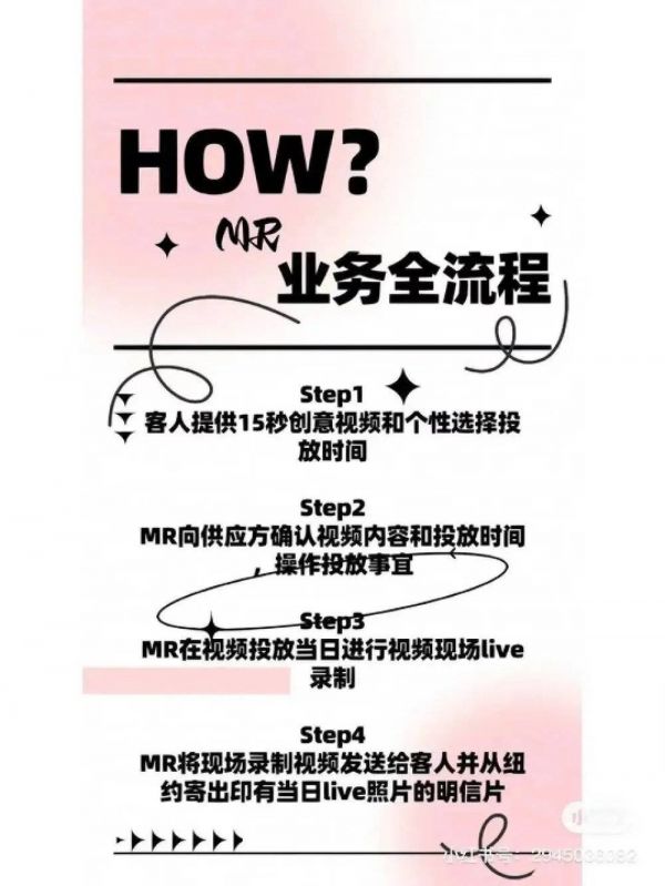 不过有头脑的商家们早就想到了这些问题,既然有需求,那就是真金白银的市场。在小红书上,随便搜搜就可以看到大量叫做“xxx纽约时代广场投屏”的账号。经过和他们简单沟通后,我选择了一个IP在美国的代拍商家“MR”。根据她的介绍,除了前期的录制视频以外,她会包揽后续的所有业务,视频上传、现场录制等等,还会寄给客户一张来自纽约的明信片。
