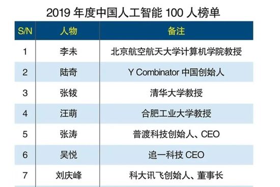 一份中国互联网周刊与eNet研究院发布的2019中国人工智能100人榜单里,吴悦入选并且排名靠前。同样在榜单里的有做推荐算法的张一鸣和彼时还在蚂蚁金服的胡晓明,有刚从百度遗憾出走的陆奇,也有猎豹移动的傅盛和曾被估到3000亿美元身价而现在市值不到70亿人民币的格灵深瞳赵勇。